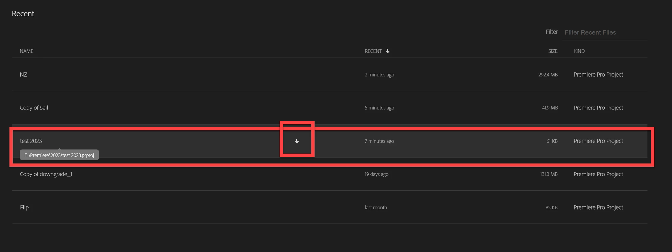 Feature request: larger "hit area" for recent projects in the home window