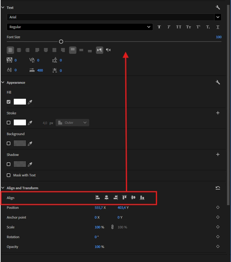 What I really don’t understand is why Align tools are not in the text group and are at the bottom of the Properties page in the Align and Transform, and in the Effect controls panel Align is absent at all. Don’t get me wrong, I totally understand that Align in the Align and Transform group is for aligning all layers, but truly, how often do you align other layers and how often - text layers?