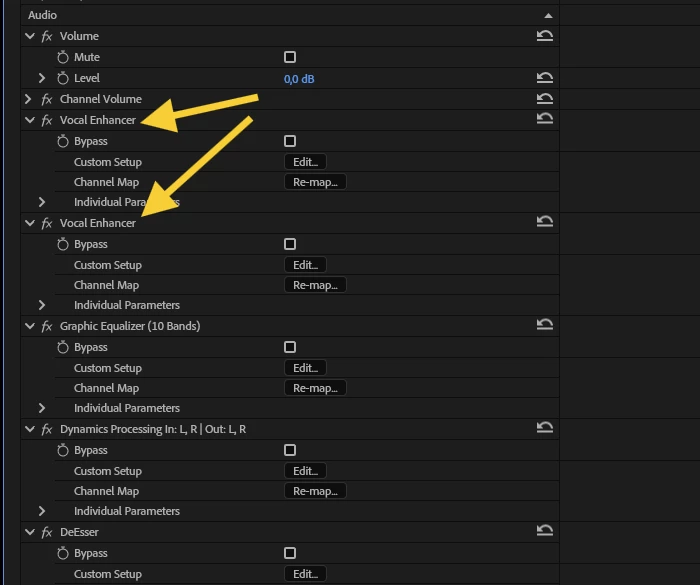 - Duplicates of the same effects on the same clip\adj layer\nest: