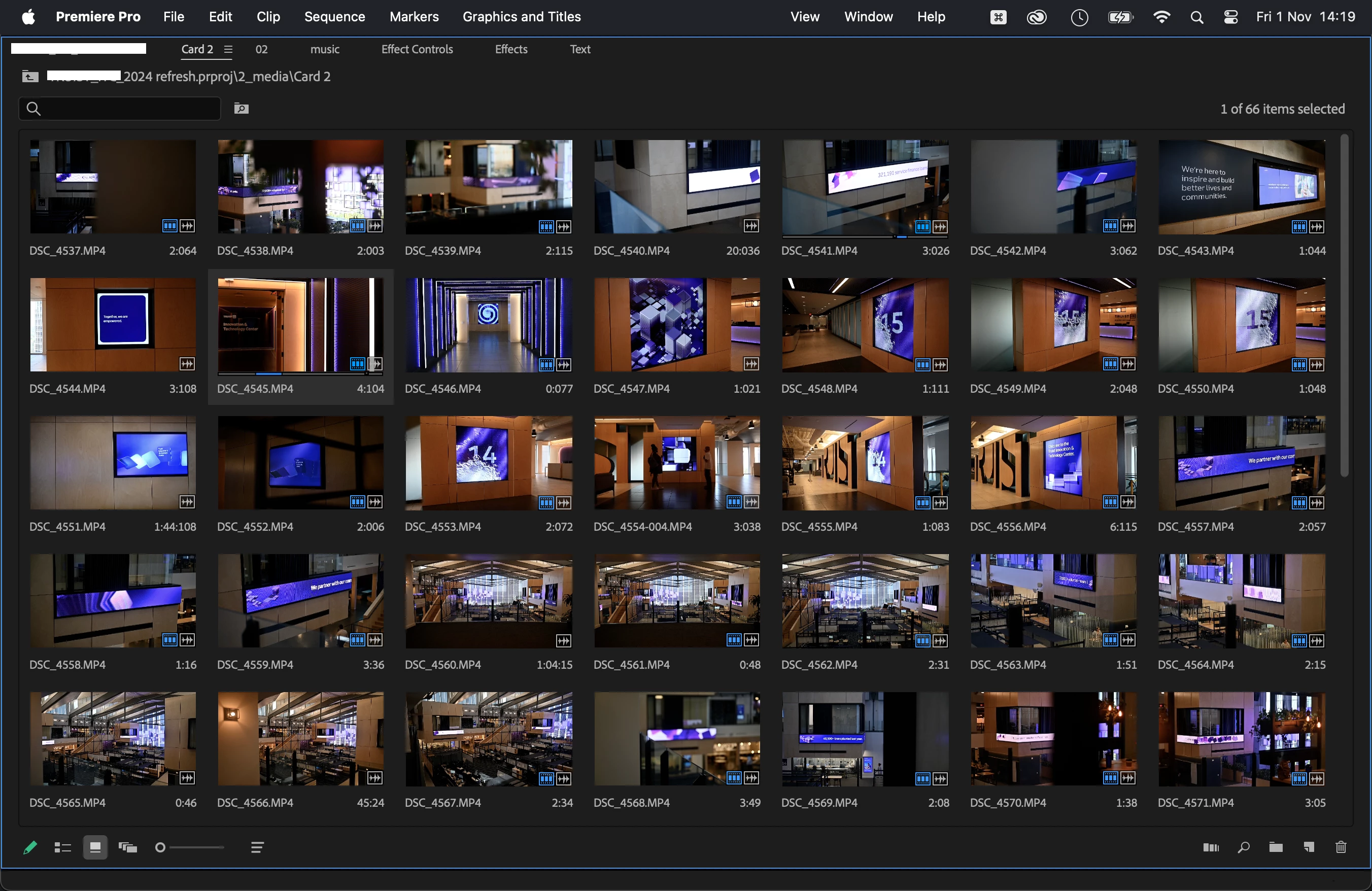 In thumbnail view, instead of scrolling smoothly down a bin of clips - as happens if I use the scroll bars - using the trackpad the movement is jerky. Visually, I find this disorienting and easily lose my place.
