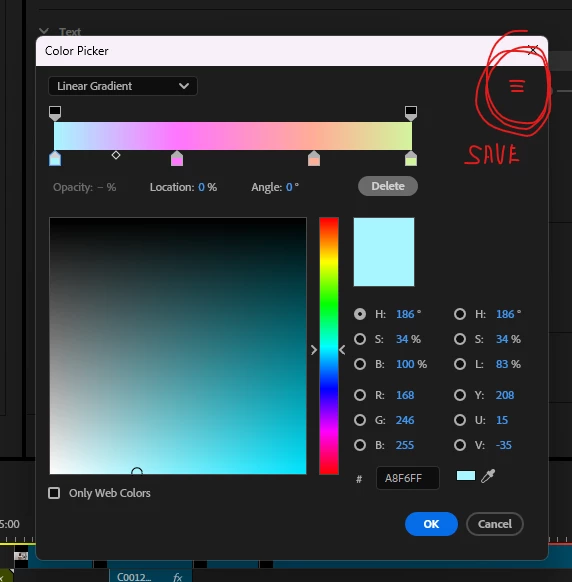 And also the ability to save the color and gradient for reuse in a project (or save to a library).