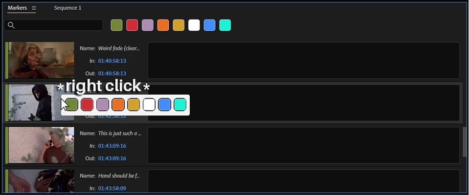 Note: Right-clicking currently does nothing in the Marker Panel, so I think this would be a good use for it.