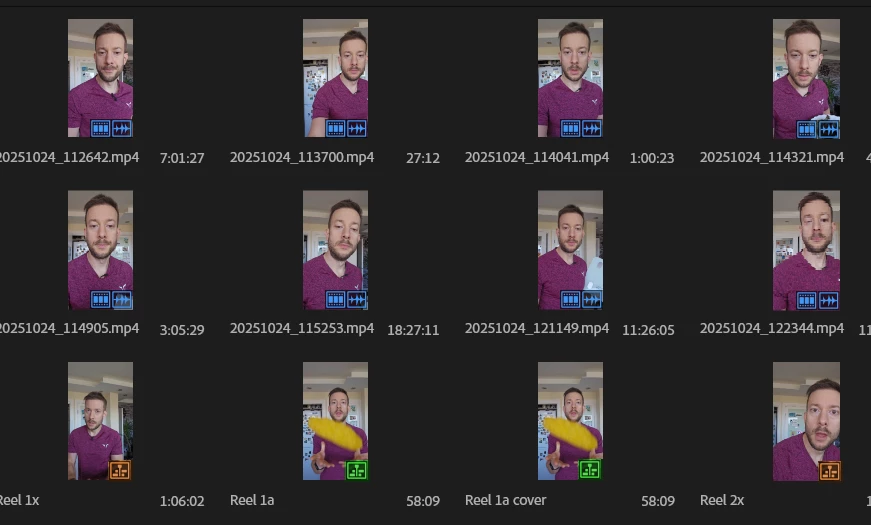At the moment, the icon for sequences and clips in the project bin is the same colour.