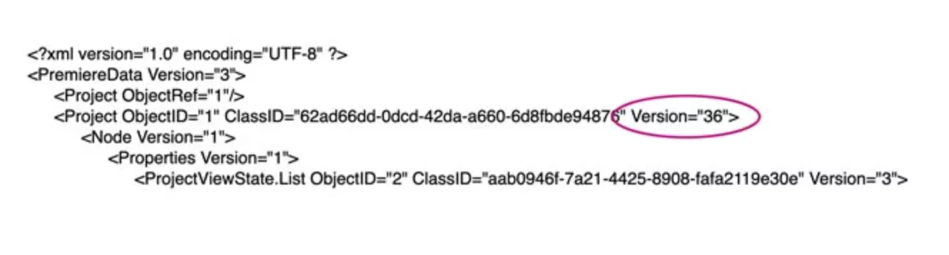 2.Nehme eine Arbeitsdatei und öffne sie mit einem Editor, ich habe BBedit verwendet. In dem Screenshot kannst du sehen, am Anfang steht die Version der Datei. Der Screenshot ist nur das Beispiel.