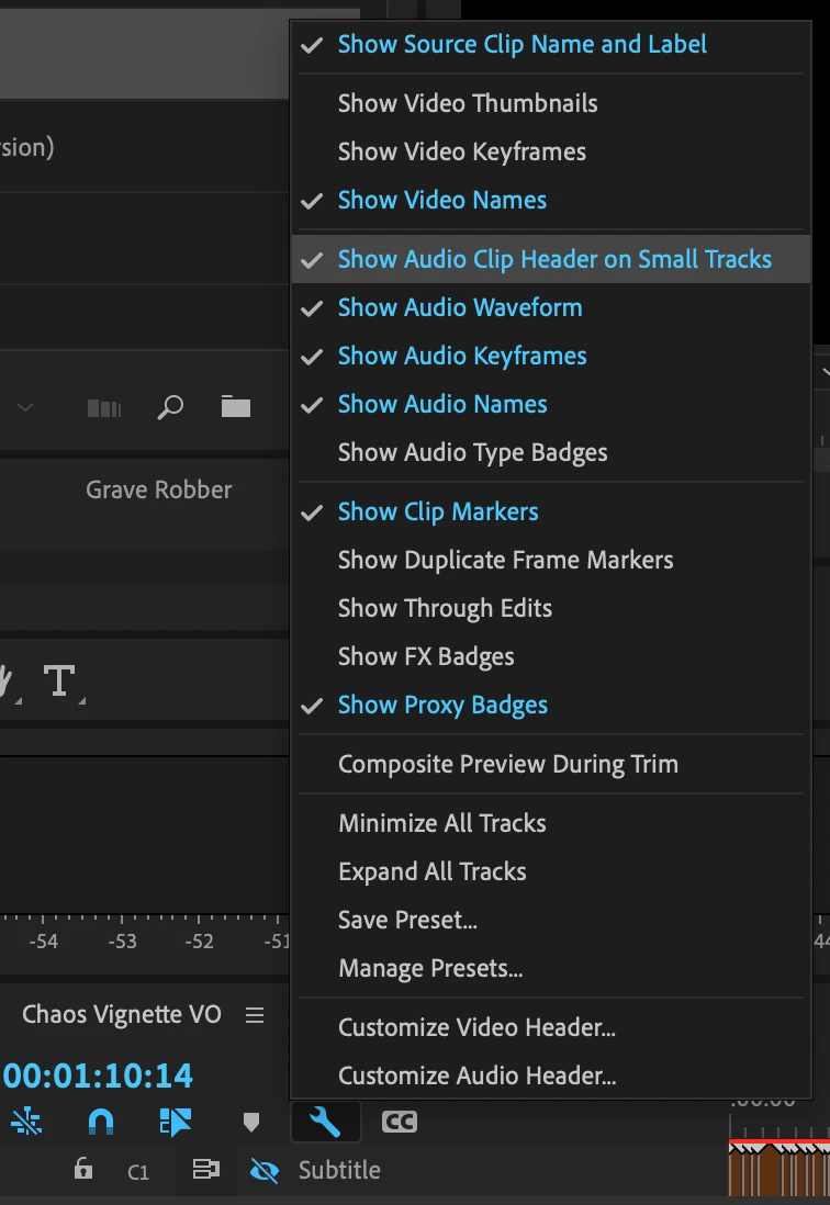 In previous versions of Premiere, audio clip names were visible when tracks were fully collapsed. Now in 2024, they only show up if you increase the size of the tracks by three or more steps. I'd love to be able to see the names of the tracks when they are fully collapsed.