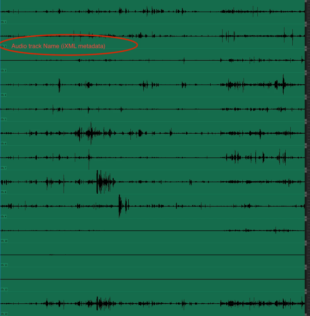 Metadata display of audio channel names embedded in imported poly WAV files