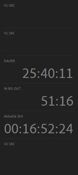 When I open a sequence as source and from the source window as timeline (source timeline) - I have video on track 1 and 2 - there is no timecode shown in the timecode window for source clips. All sequence related information is shown (even the topmost clipname) but no track related information (V1/V2 SRC).
