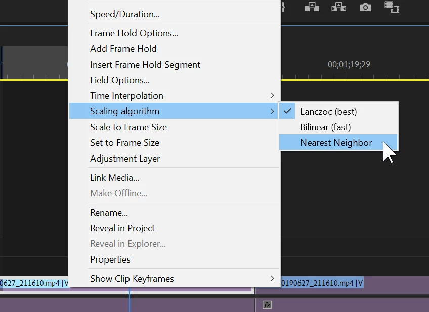 Premiere should absolutely have the option for the Motion effect to use Nearest Neighbor. (It would still be bicubic by default, as it is now.)