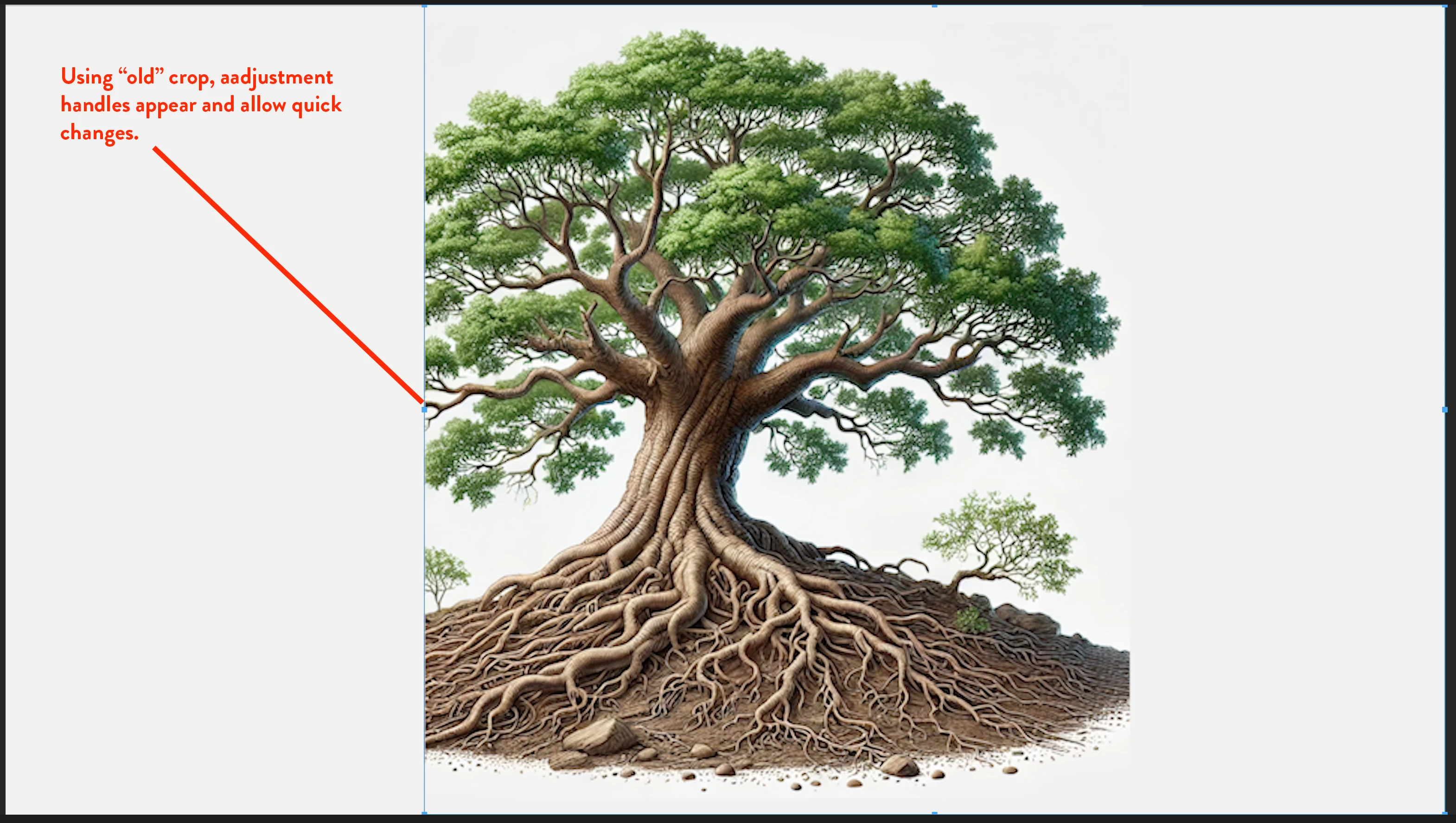Only problem is, unlike adding (old) CROP from the effects panel, you can't click on the object and see all four adjustment handles.