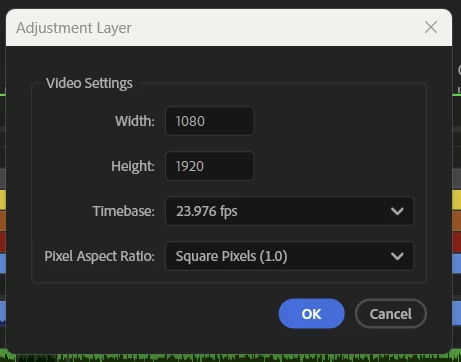 When I go to create a new item in my Premiere Project; I get a dialog box for settings and sentiments for that specific item; resolution, bitrates, width, height, pixel resolution, etc.