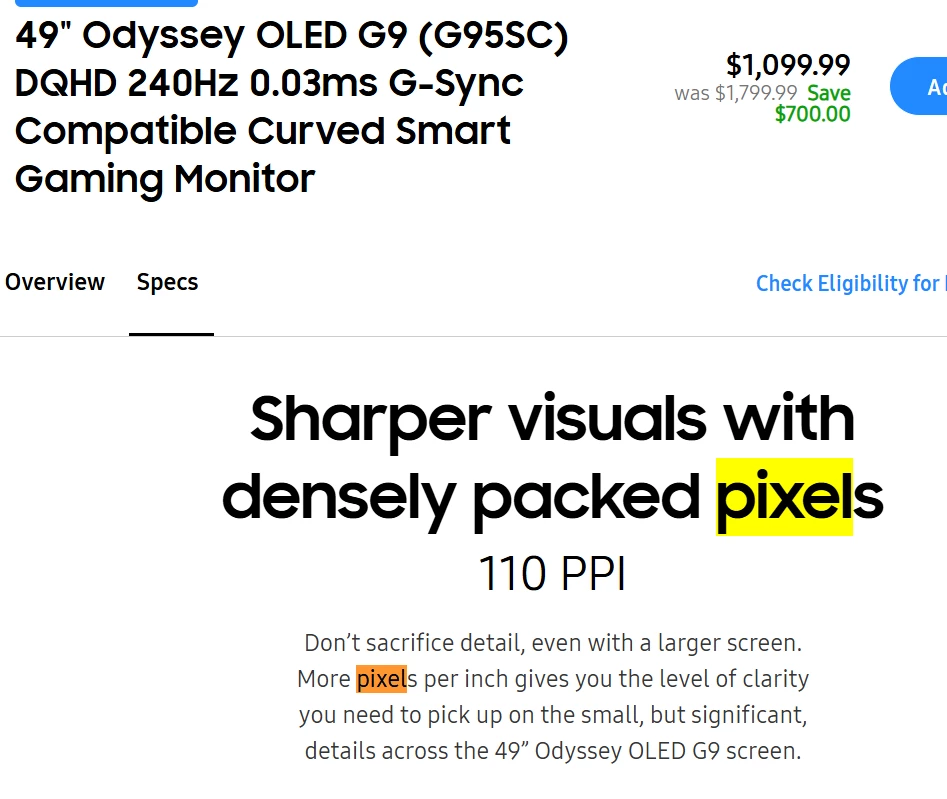 It'd be better to have larger, less 'densly packed' pixels, for a monitor used in PP, IMO. Interesting monitor too. 5120x1440. My two 32" also Samsung monitors (love them) equal that, so ie: a 64" monitor compared to your 49".