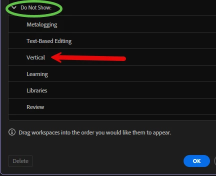 Hey @robert_2063 , do as you wish. What workspace are you using when you cut vertical? I have mine setup under the 'Do Not Show' banner 🙂 , but you can move it up in the list.