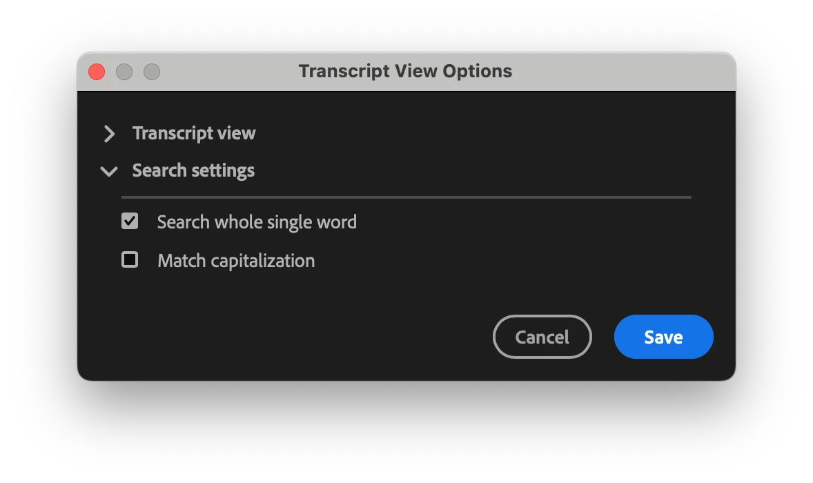Also if you leave a word in the text box and switch to another sequence, after a bit of lag it automatically jumps in the timeline if that word is already present in the new sequence, so you lose your place and have to hunt for where you just were in the timeline.