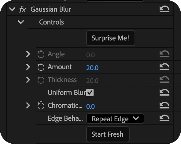 In Premiere Pro 26.0, the “Gaussian Blur” Effect has changed the name of its main blur amount property from “Blurriness” (PP 25) to “Amount” (PP 26).