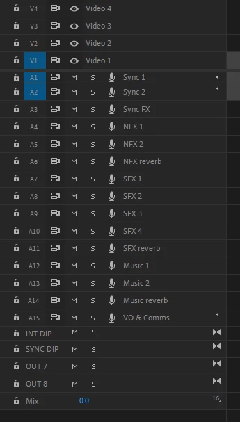 To be able to deliver like this we create a Audio Track Layout with multiple submixes to accommedate this: