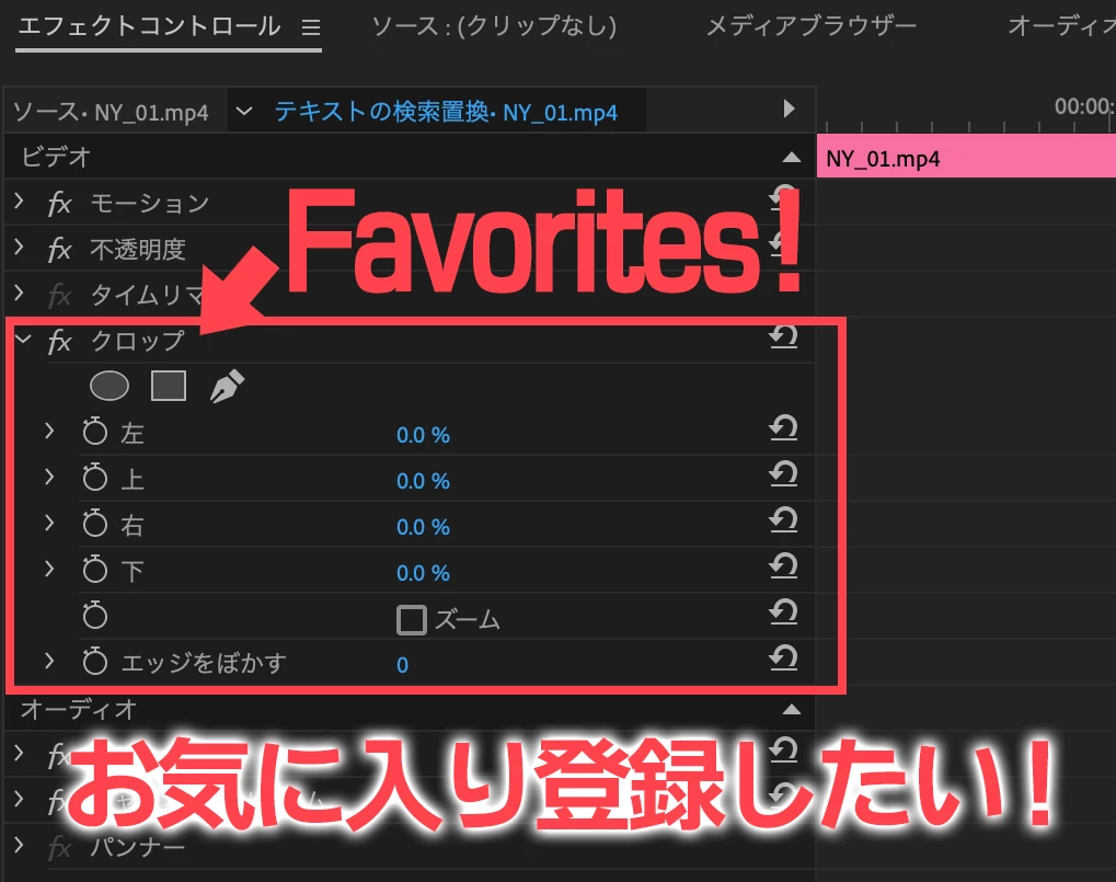 エフェクトの「クロップ」のように、頻繁に使うものを登録しておきたい!