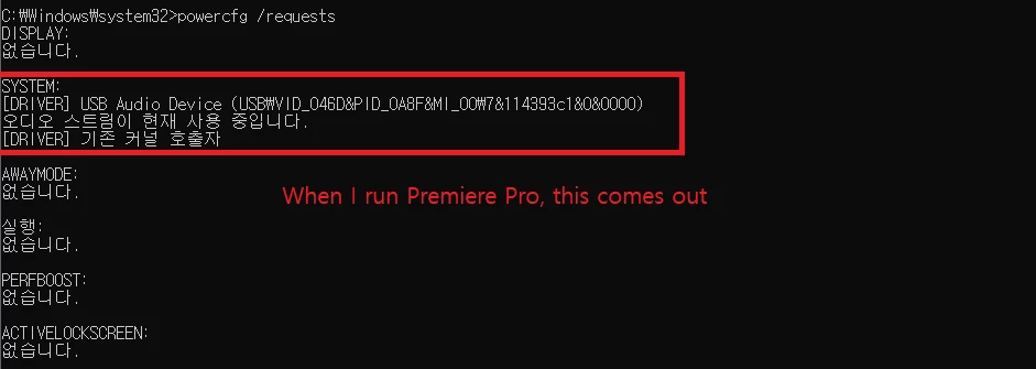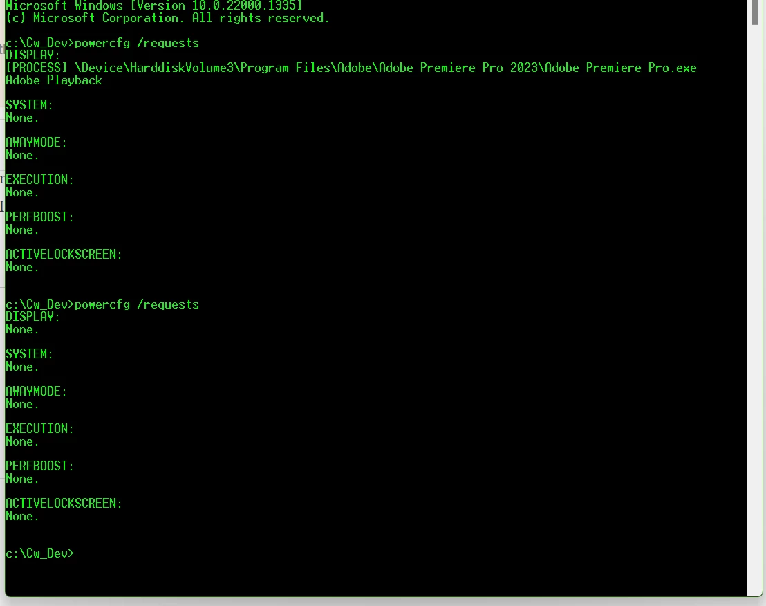 powercfg /requests, the top one is while PP is playing back, lower one was when I stopped the playback.