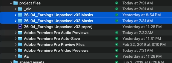 So tomorrow when I duplicate this and make a v04, I’m going to open Premiere and it’s going to find the masks, and when it can’t find them it’s going to make another folder with them in it.