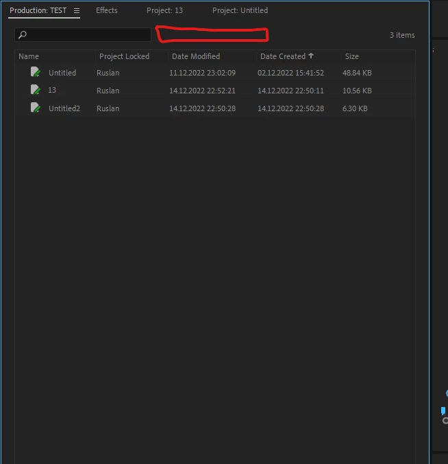 When working on projects in the Production function, sometimes I need to quickly find the right sequence, but since the search now only works by searching for the title, is there an option to change it?