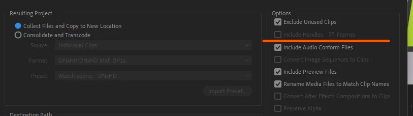 in Premiere, add the option to select "Collect Files and Copy to New Location" in the Project Manager tab. This will allow you to send the project to the archive while saving a large amount of free space on the workstation disk.