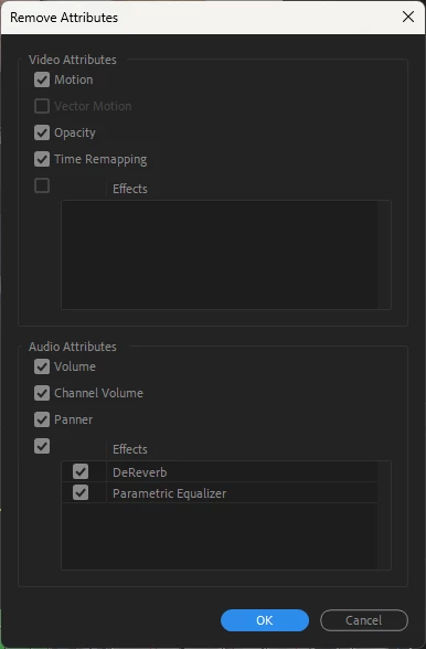 For eg, if last time I used Remove Attributes, I had only the Motion and Opacity checkboxes selected, then next time I open up that box, those two should be the only ones selected.