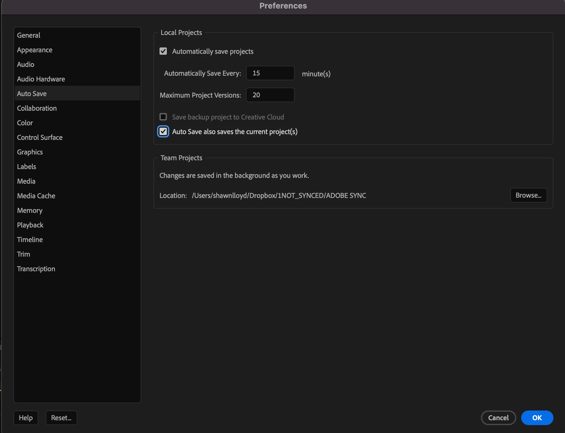 Next to adding monitor zoom to the middle mouse button, one of the most annoying things Adobe has ever done is the Discontinuation of Creative Cloud Synced files ( not holding shift when proportionally enlarging in Photoshop unlike literarally every other Adobe app is a close 3rd.) But unlike the others complaints, the Discontinuation of Creative Cloud Synced Files cost me $100 when a Premiere project file was deleted by acccident and I didn't have a backup and had to buy some disk file retrieval app to recover it. I knew it would happen. Trying to remember to copy my projects over to Dropbox was bound to fail eventually.