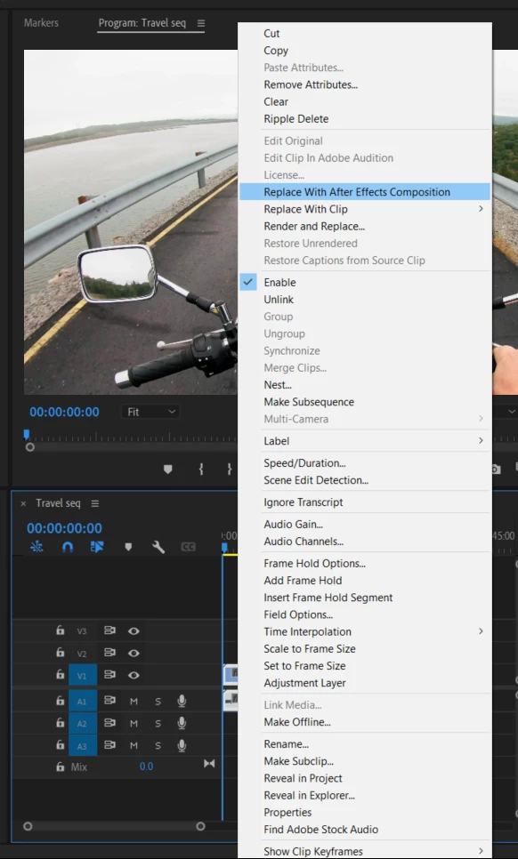 When a clip part of a sequence in Premiere project is replaced with After Effects composition,