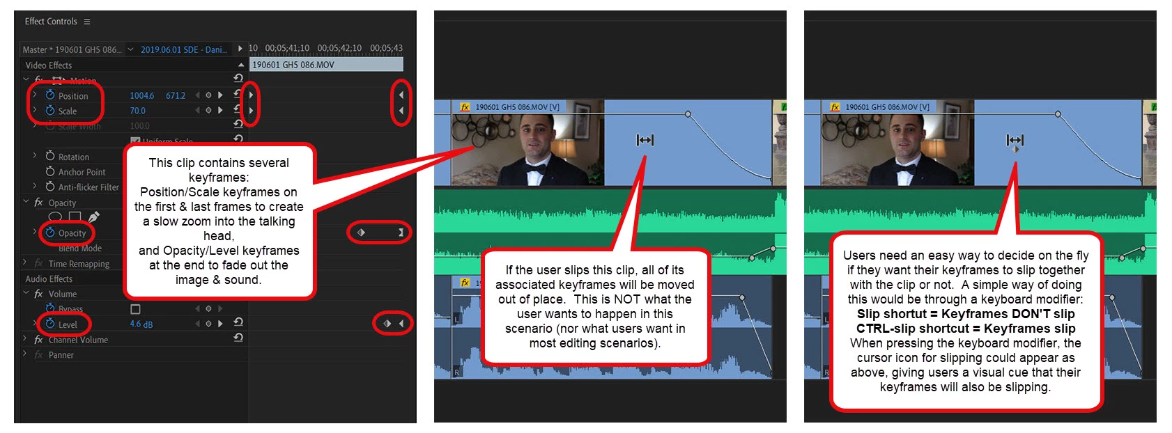 I want the ability to make certain keyframes sticking relative to clip start and end. It would be great for presets and editing in my case!