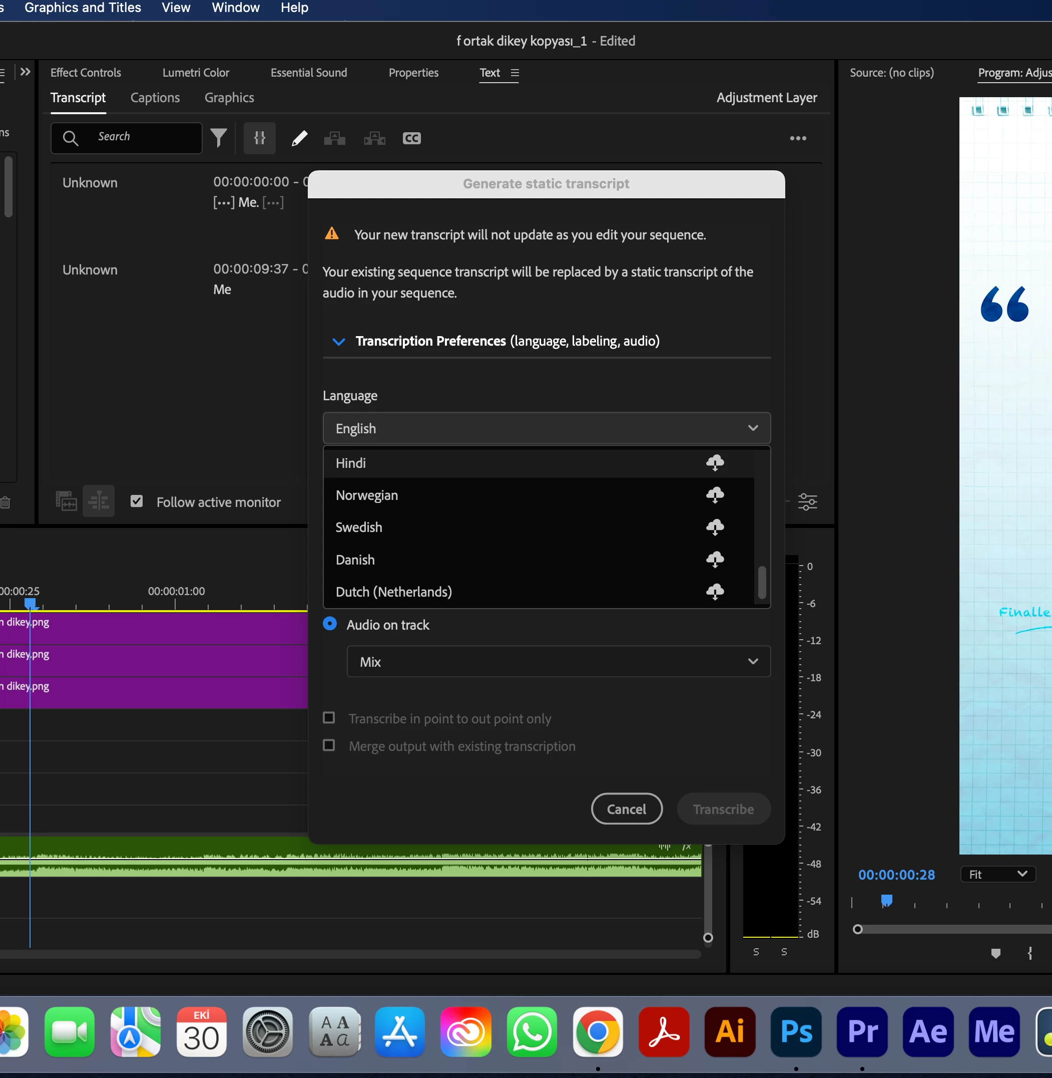 "Turkish" language support in the transcript in Premiere Pro 25.0! Although there are