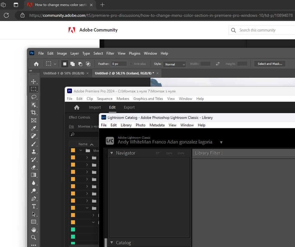 Applications like Photoshop and Illustrator already support dark title bars that align with the rest of the UI. This makes the user experience more seamless and visually consistent. Premiere Pro, as part of the same Creative Cloud suite, should offer a similarly polished experience.