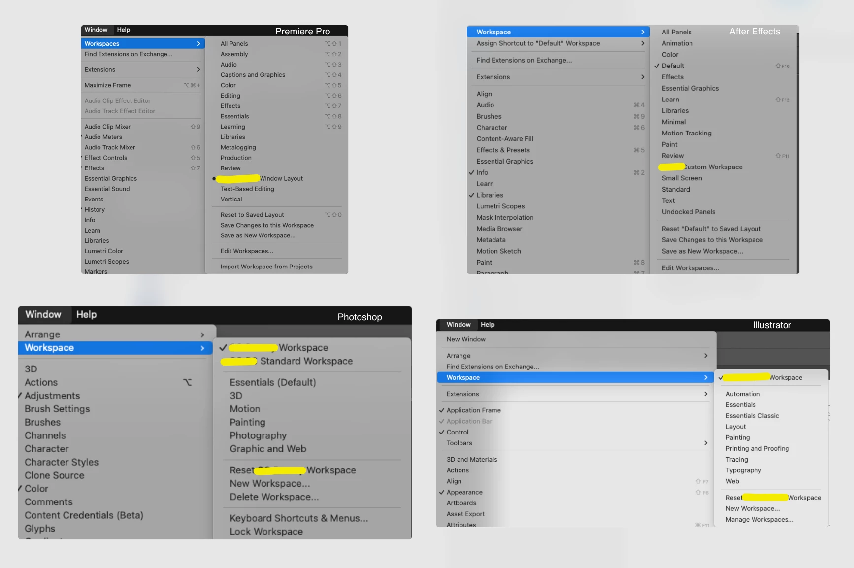 Just showing of Adobes Inconsistency within UI and Workspaces as in this example for four different apps.