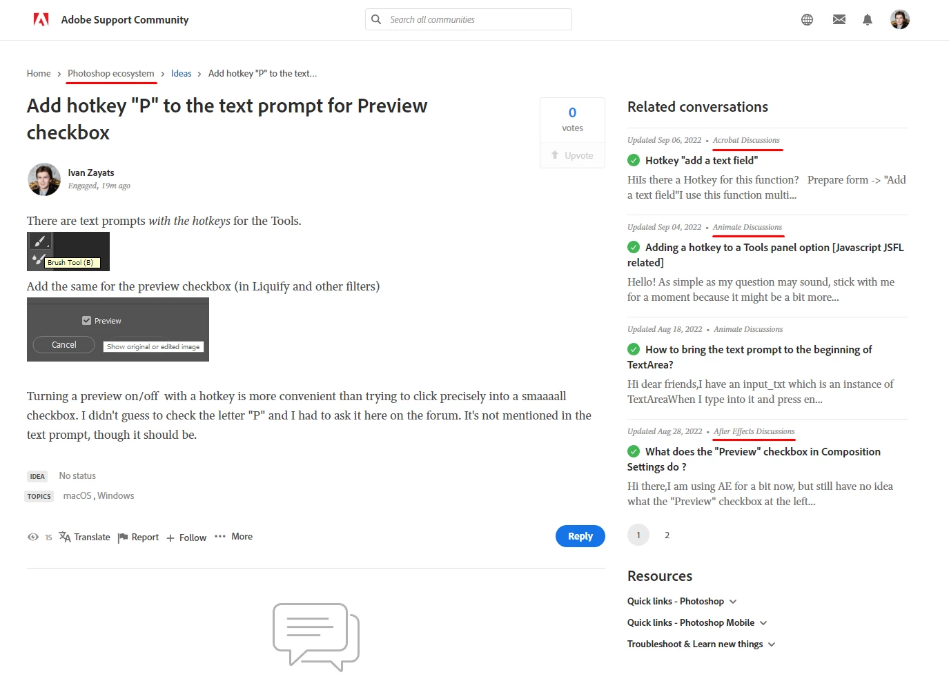 In the "Related conversations" we see the topics with the same keyword, but from other forums. To me they aren't related at all (in most cases). I'd like to see only the topics of the same forum.