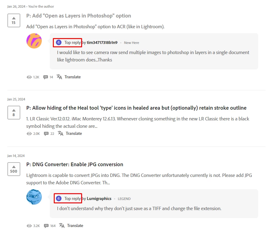 I don't see any use of the Top reply feature.
