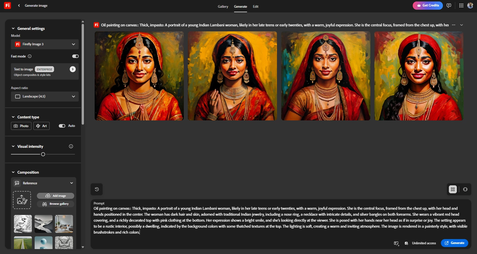 If I write the same prompt in other websites, they gives me very beautiful models. Like Indian women, men, animals and the culture eetc. But firefly is very bad… You can check with my creations and the prompts