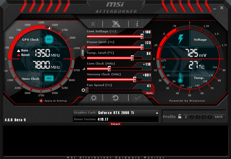 I've added a +110 to the Core Clock, and a +801 to the Memory Clock.