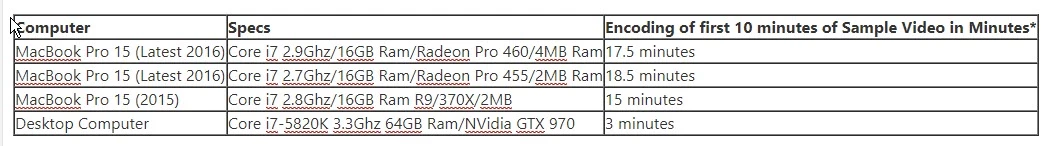 The rendering is basically two 1080p video streams that get reduced top picture in picture with the output again being 1080p. I know different video processors make a difference because I've carried around a 10 minute benchmark I use over and over for testing between different devices (previous results pasted below).