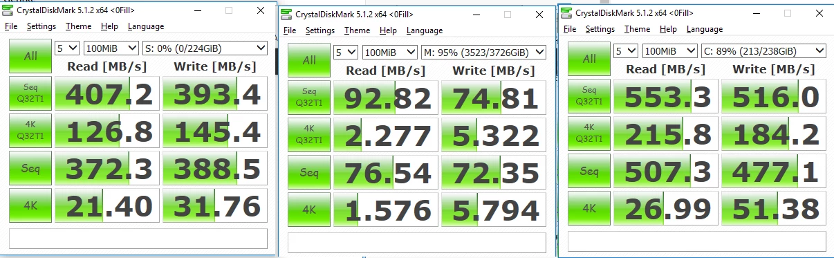 I have a 256GB internal SSD running on a sata3 connection running my OS.
