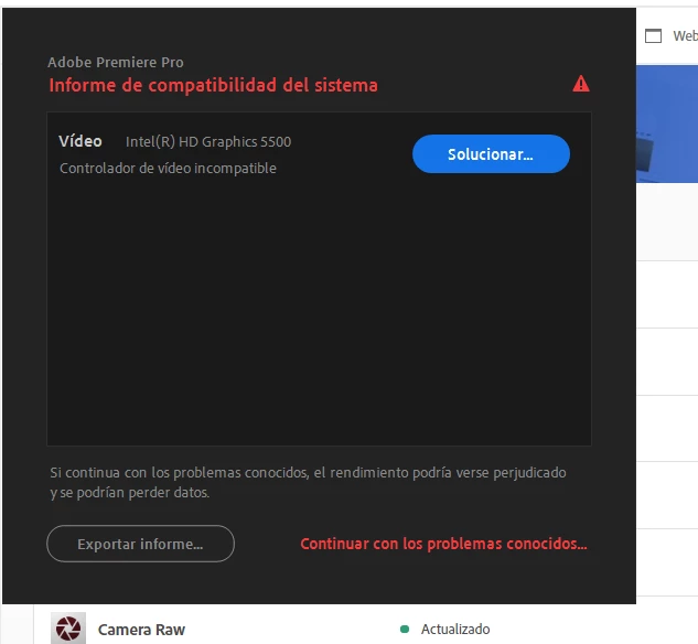 informe de incompatibilidad del sistema con Adobe Premiere Pro