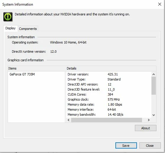 NVIDIA GeForce GT 735M : Unsupported video driver
