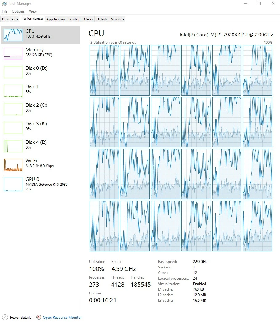 Here's some grabs of specs, and CPU utilization during playback of an especially "active" h.264 4k sequence. CPU bumps to 100% quite often.