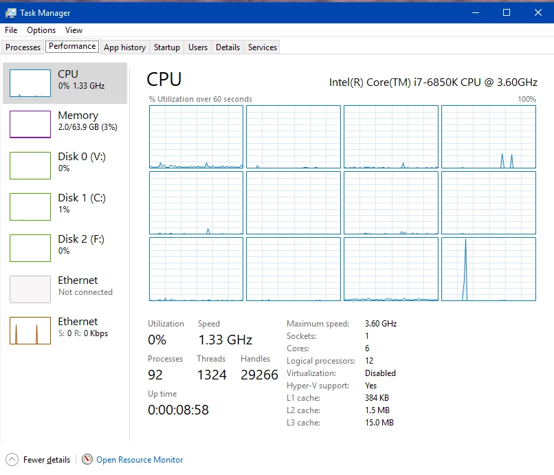 When I first saw Bill Gehrke processes tab with 62 processes I was feeling confident - but I was looking at my Windows 7 install at that point and I was down around the same number. However, my newish 6850k build using Windows 10 - is +30 on that or at 92 about 5 minutes after a fresh reboot. My Task Manager / processes screen is below.