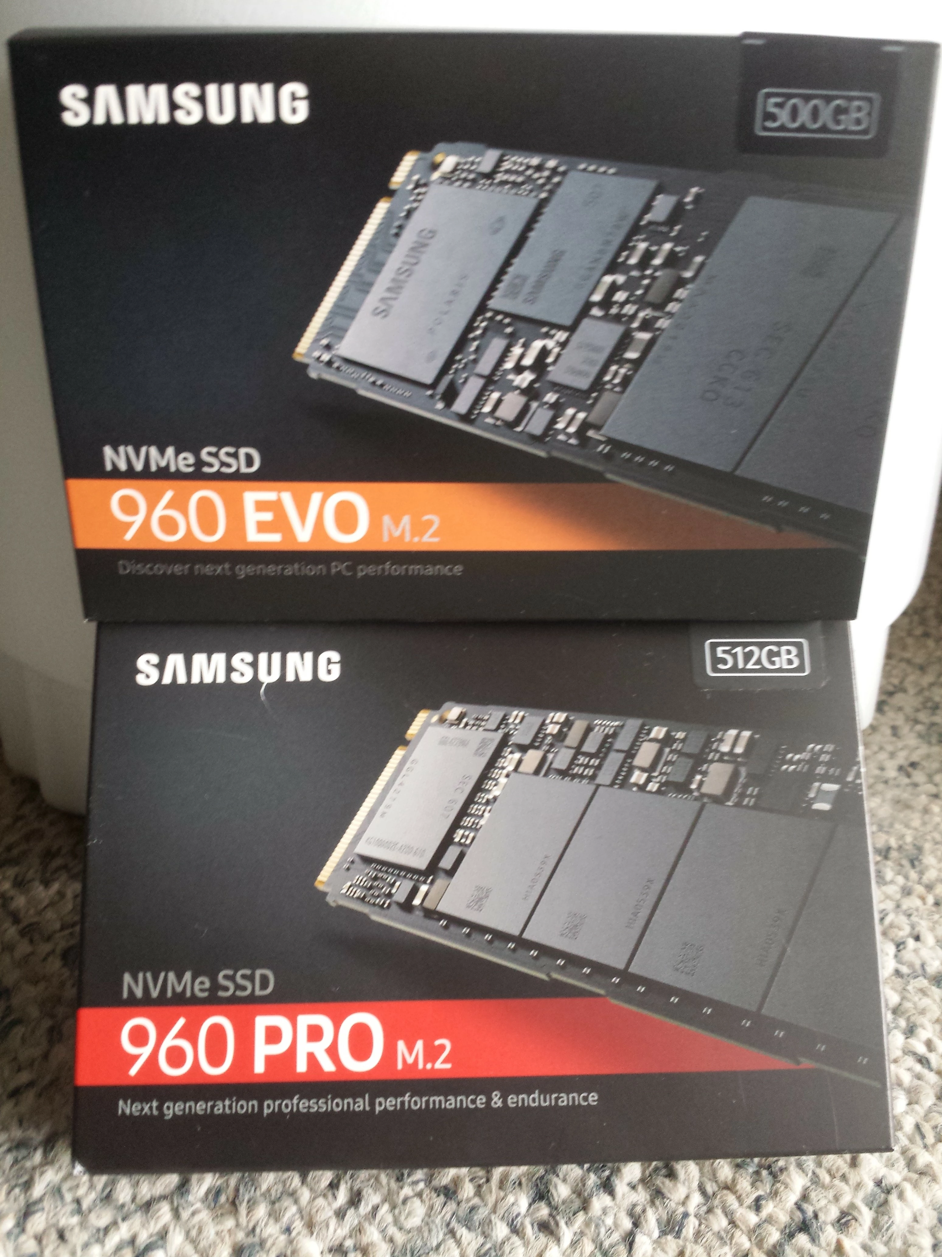 Following the conversation about a month ago I here regards 960 SSDs I was starting to think I may not get one in time for my build sometime this month and the 'in stock' messages kept changing a B&H so I order one of each, figuring I'd cancel when the first once came in. Last week I got an email that the order had shipped, so now I have two.