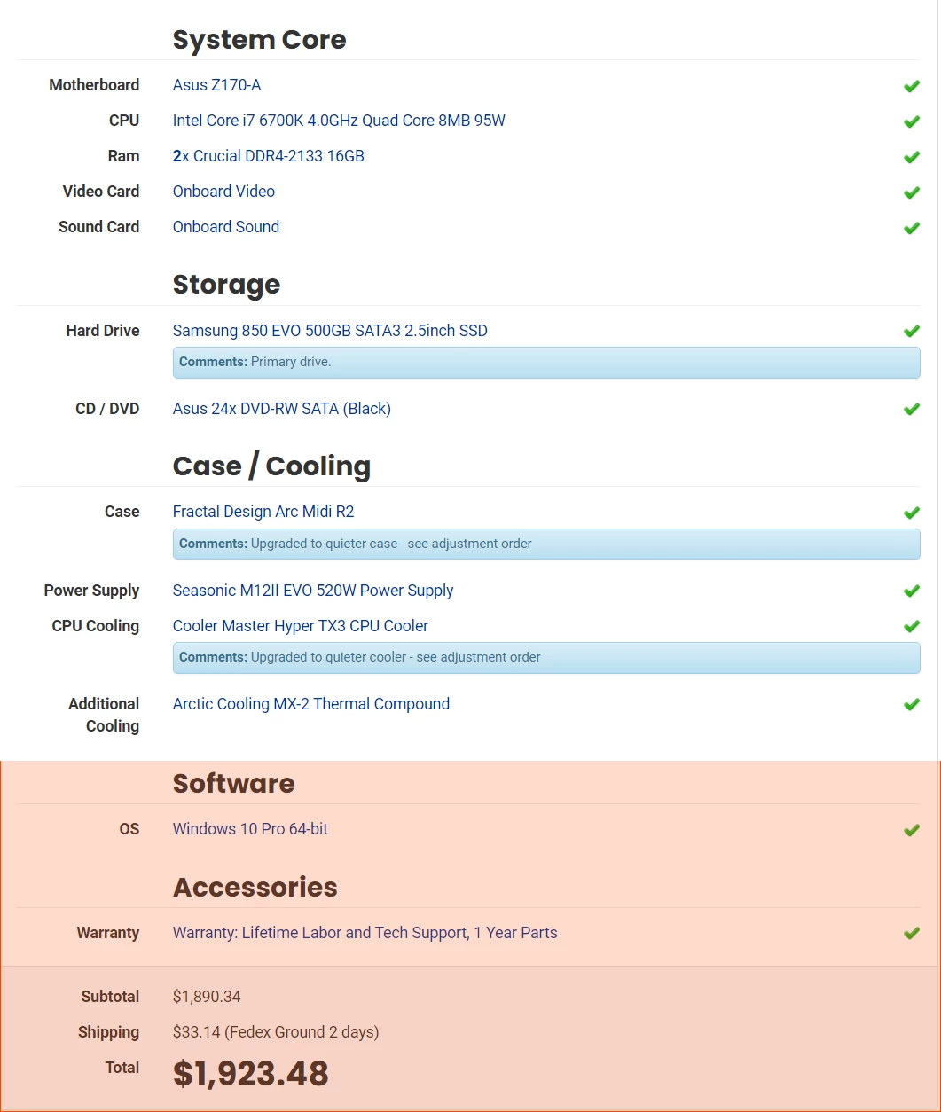 Below are my current system specifications: