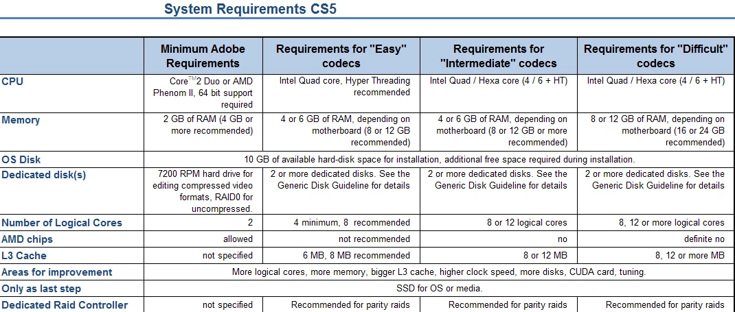 This makes it all the more confusing for people to know what they need when they start out with video editing to run CS5 successfully.