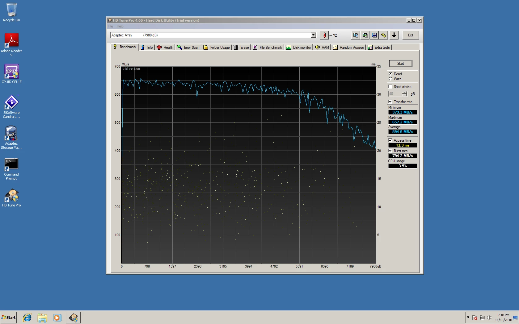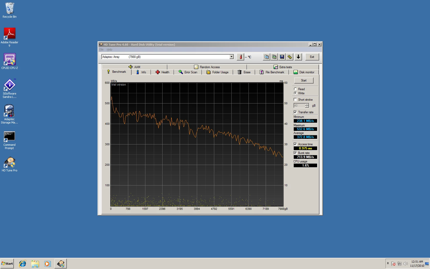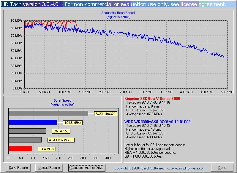 Look carefully at this chart to see what a properly configured RAID can do to performance and compare it to the earlier single disk chart to see the performance difference, while taking into consideration that you can have one disks (in each array) fail at the same time without data loss: