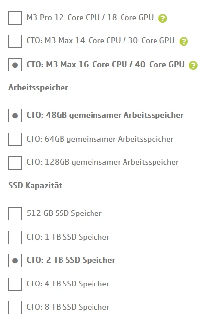 a) CTO: M3 Max 14‑Core CPU / 30‑Core GPU or a CTO: M3 Max 16‑Core CPU / 40‑Core GPU processor?