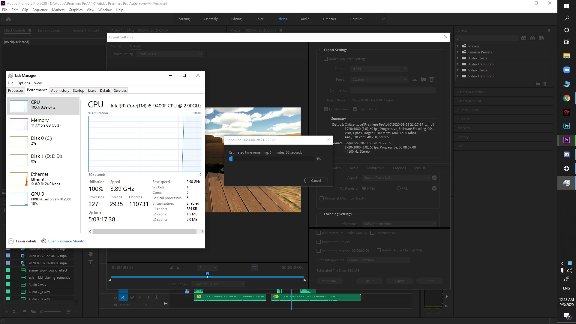 - Finally, the i5-9400 (both with and without the "F") is a weakling of a CPU by current standards. In fact, it is actually weaker in thread-intensive productivity apps than even a quad-core 7th-Gen i7-7700 (non-K) CPU. That makes the RTX 2060 quite a bit overqualified for your CPU. That CPU does not deserve a GPU that's any higher-end than a non-Super GTX 1660 for a balanced performance between the CPU and the GPU.