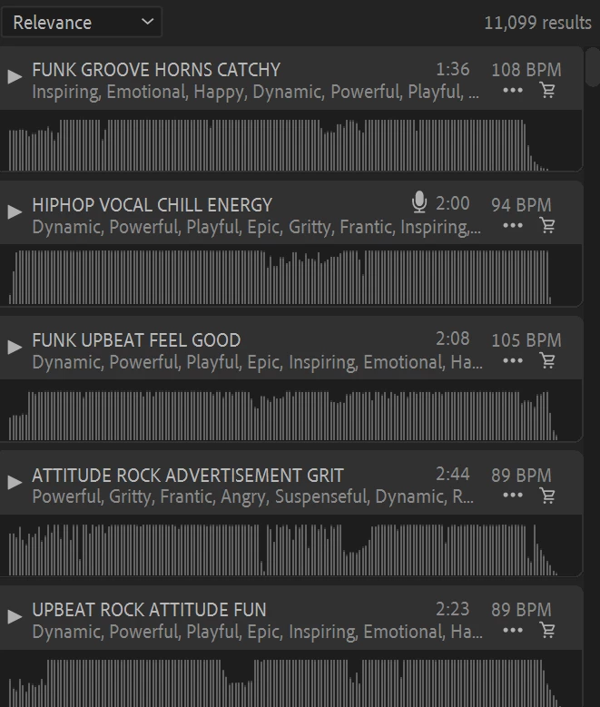 Just want to tell you, Adobe, that the Essential Sound is an absolute useless joke. All these clowns making audio and checking every single box and you can never find anything. I've gone back to using another service. For instance, these are my results under Dramatic and Slow. I'm making video from Mariupul and I can't find a single thing to fit using the filters. I don't know why you even bothered programming this functionality into Premiere when you could have spent the time better fixing your stupid verification system (which, by the way, is garbage.