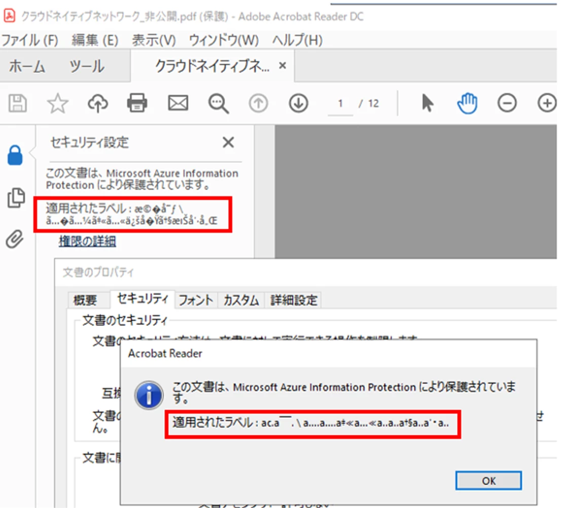 A label below should be “機密 \ 機密(社内)”. This seems a bug of MIP plug-in when it retrieves and displays label names in Japanese.