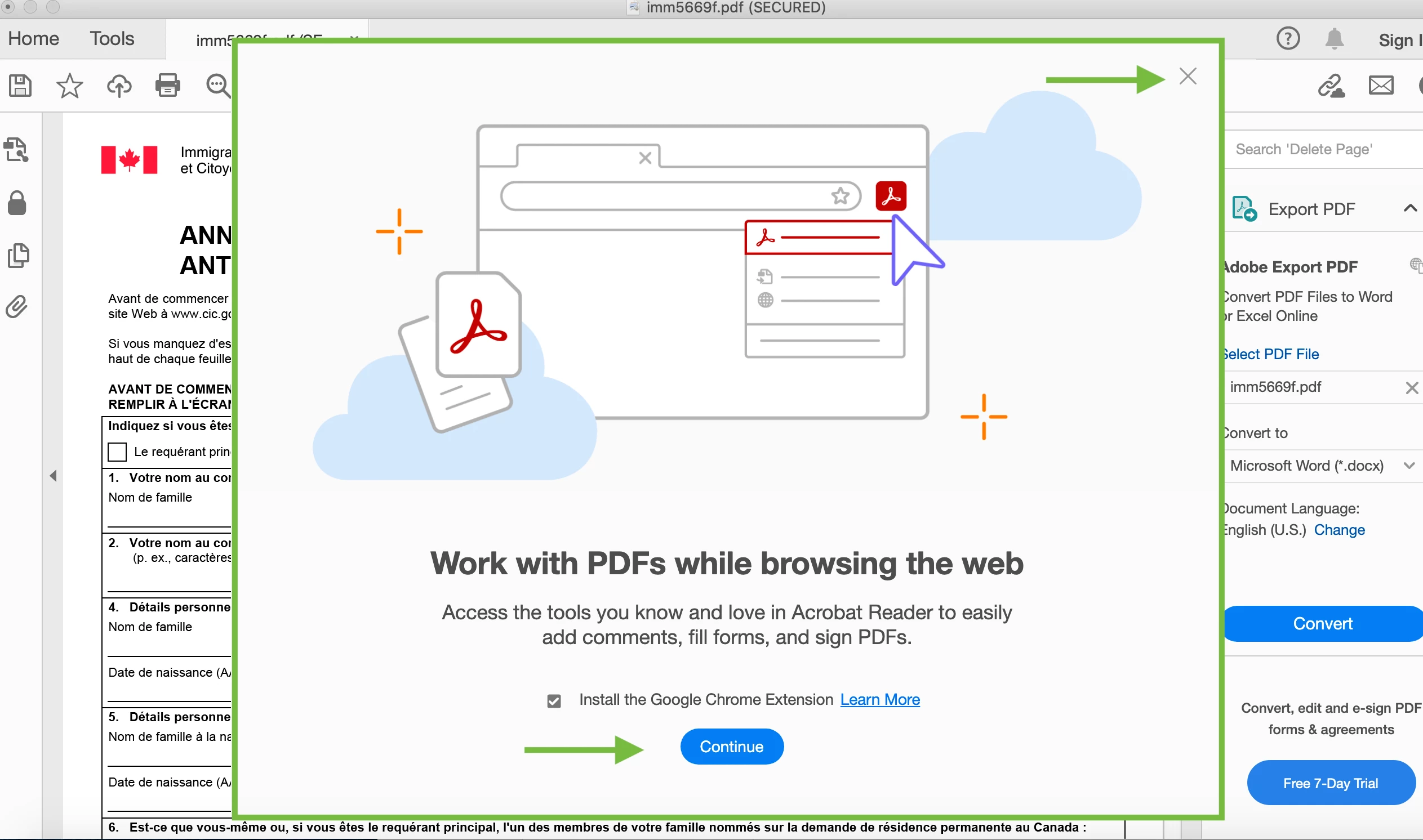 For Mac users, when I open a document, file with adobe acrobat reader on my desktop, a pop up shows up in the middle of my screen (work with pdfs while browsing the web) and I can’t remove it by clicking X or continue. It’s really frustrating because I can’t not read what’s in my file.